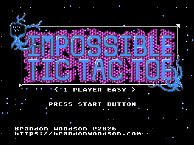 Impossible Tic Tac Toe is a game for the Sega Genesis using SGDK. I have tested it using emulation and hardware, including my trusty OG Genesis and Analogue SG.